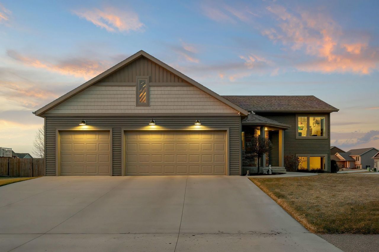 Located just steps from the Nature Center with a trail out your front door, this exceptional corner-lot home offers striking curb appeal with an architecturally unique angled entry. A spacious foyer leads to an upper-level living space bathed in natural light through expansive corner windows, which is accented by a tray ceiling. The kitchen is a chef's delight, featuring birch cabinetry, stone countertops, tiled backsplash, and center island with stainless appliances. Retreat to the private primary suite, which boasts a vaulted ceiling, walk-in closet, and an ensuite bath. With four bedrooms, three baths, and a fully finished lower level complimented by a fireplace, this home provides ample space and comfort for the whole family. Enjoy outdoor living on the low-maintenance composite deck overlooking a generous yard. Let's not forget about the 3-car garage. A perfect blend of style, function, and a premier location, this remarkable residence is a must-see!