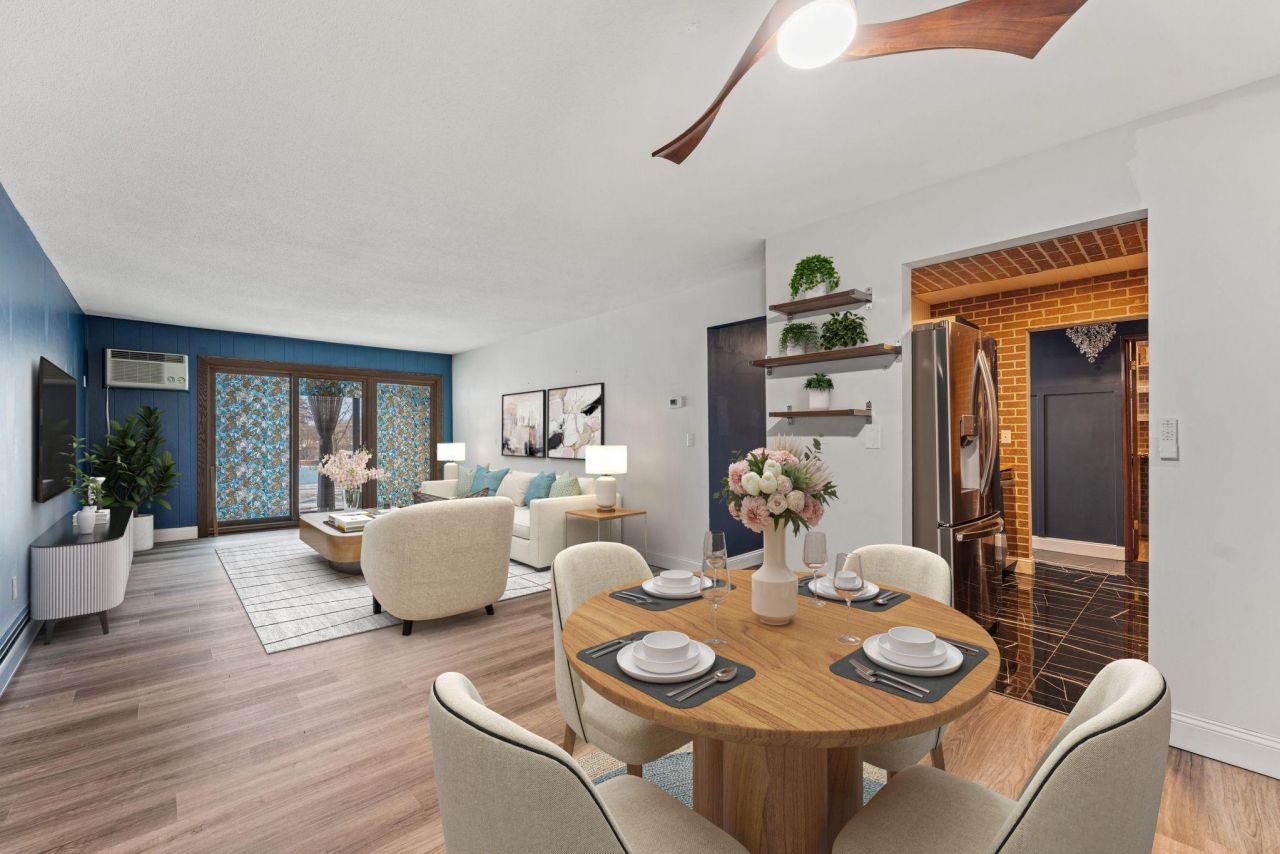 Amazing main-floor condo in a secure Roseville community with unbeatable location and updates throughout! Fresh paint, board-and-batten accents, new LVP and tile flooring, remodeled kitchen with new counters, cabinets, appliances, and LED lighting. New stainless steel Danby 20 electric range. Both bathrooms feature new vanities, fixtures, tall toilets, and striking tile work, including a walk-in shower. Modern touches include new ceiling fans, Honeywell thermostat, Schlage touch-panel lock, Ring doorbell, and more. Screened patio recently resealed by association. Building amenities include pool, hot tub, sauna, and spacious sport court. Walk to Roseville's Central Park and Bennett Lake with 225 acres of trails (1-mile lake loop + 3-mile Bennett/Victoria loop). Nearby Roseville Skating Center & world-class Guidant Oval, plus close to Rosedale Mall, retail, and dining. Easy commute to both Minneapolis and St. Paul downtowns. Move-in ready, stylish, and convenient ? don't miss it!