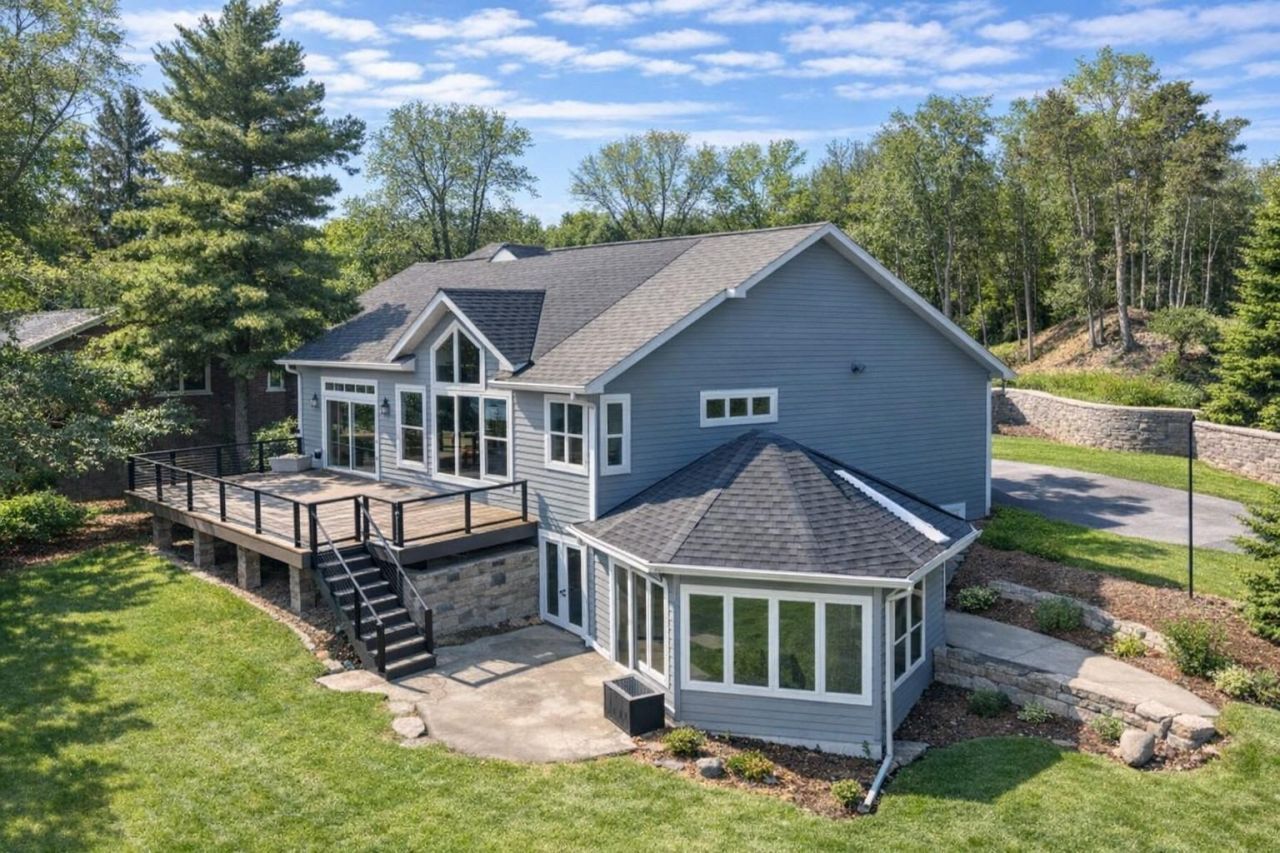Discover lakeside living at its finest with this impressive 5+ bedroom, 5 bathroom home on the beautiful Lake Alexander! Situated in the heart of the Lincoln Lakes Area and surrounded by other popular recreational lakes, this property boasts over 200 feet of pristine lake frontage...perfect for fishing, boating, and year-round enjoyment. The home welcomes you with a grand foyer entry with vaulted ceilings, opening to a bright main level featuring expansive windows showcasing unbelievable lake views. The custom kitchen offers granite countertops, ceramic tiled flooring, natural wood cabinetry, breakfast bar, built-in wet bar area with sink and wine cooler, and a spacious 5x6 pantry. This area flows into the living/dining room area complete with a cozy fireplace. The main-level primary suite includes a private bath with dual vanities, spacious tub, a walk-in tiled shower, and a generous walk-in closet. The main-floor also offers laundry and a half bath. The walk-out lower level provides even more space to relax and entertain, featuring a sunroom with an indoor hot tub leading to the patio overlooking the lake, a large family room, game room, full bathroom, 1/2 bathroom and 3 additional bedrooms. The upper level offers 2 bedrooms plus a versatile bonus room that could easily convert into an additional bedroom, along with a full bathroom featuring a double-sink vanity. Enjoy the convenience of a heated 3-car attached garage, a paved driveway, and an ideal setting at the end of a quiet road - offering privacy and less traffic. Additonal features include: lawn sprinkler system, storage shed, new lakeside deck and fenced-in garden area. This exceptional property delivers space, comfort, and unforgettable lake views. A true Lake Alexander gem!