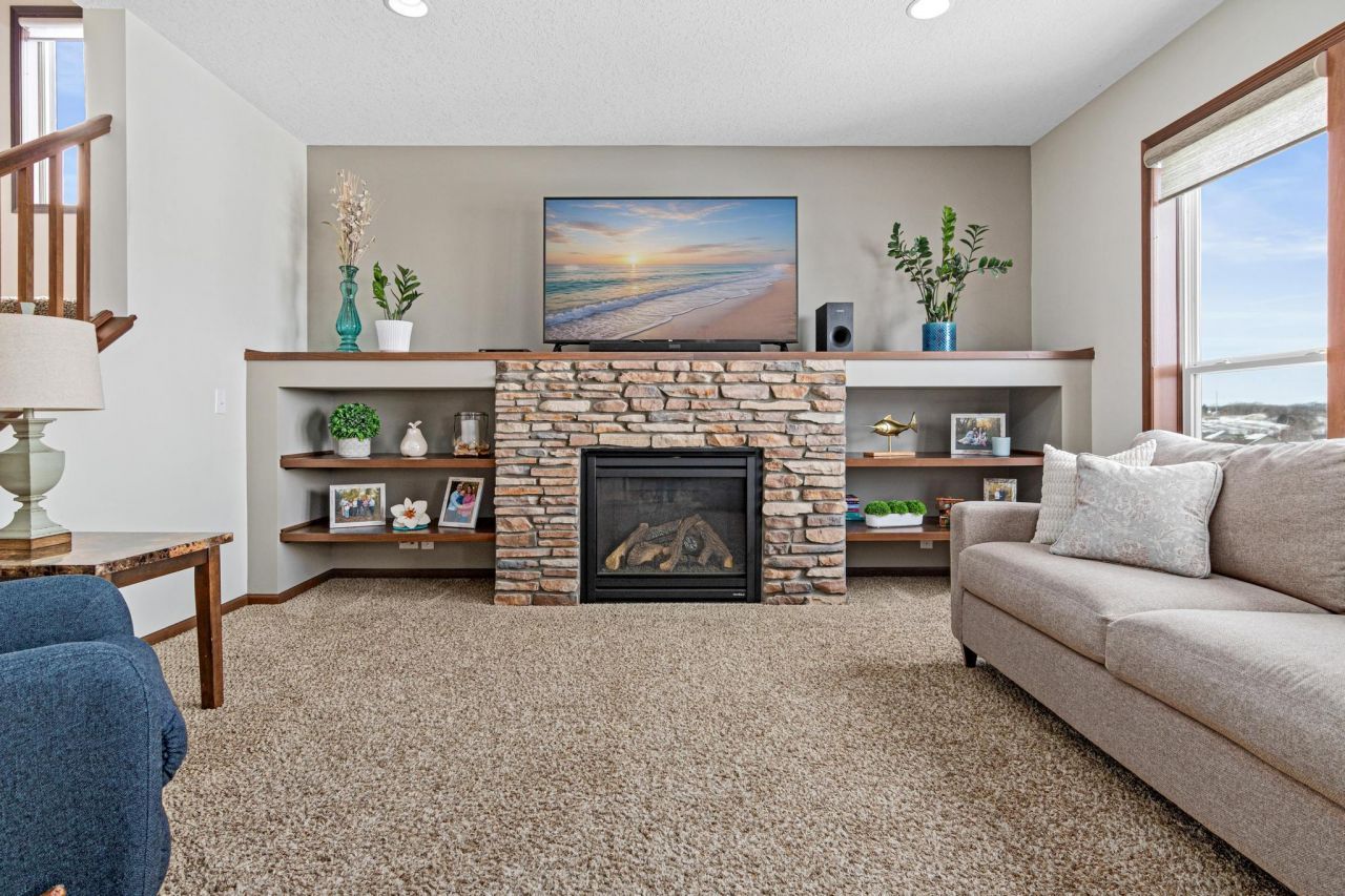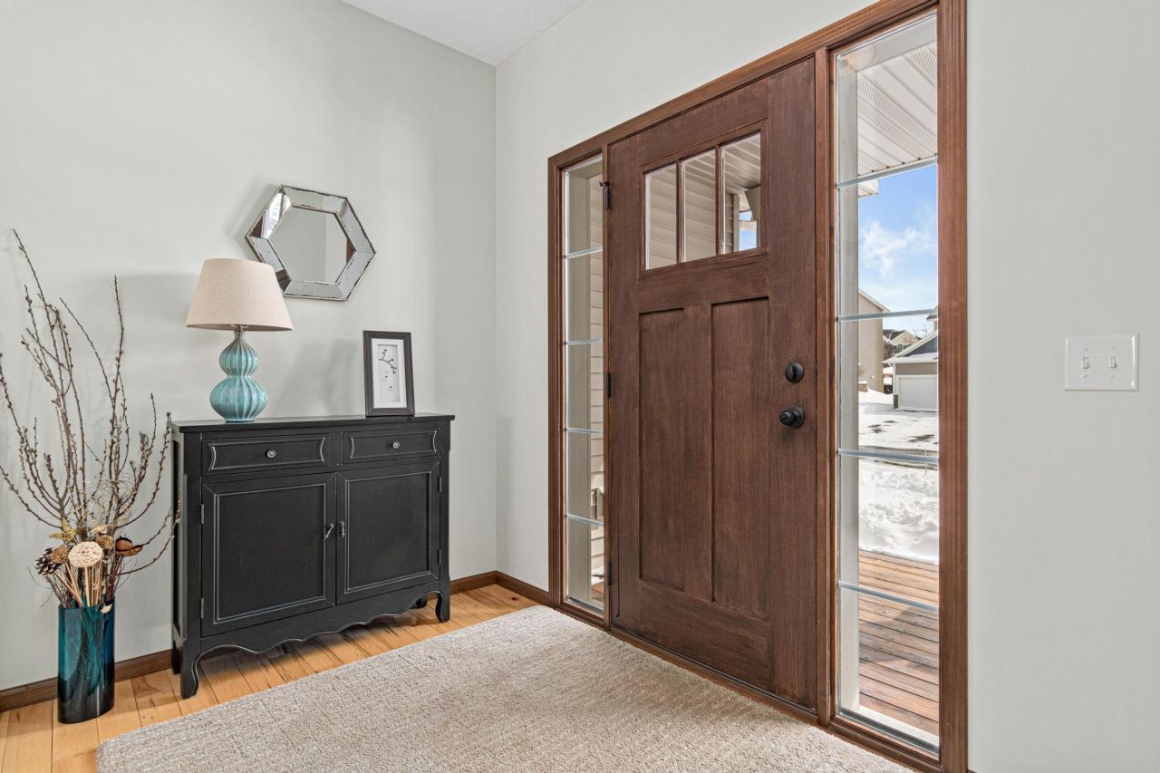 Welcome home to this beautifully maintained 4-bedroom, 3-bath gem in one of Lakeville's most sought-after neighborhoods! The spacious main-floor kitchen features dark cabinetry, stunning hickory flooring, stainless steel appliances, and a center island perfect for gathering, all flowing seamlessly into the inviting living room with a cozy fireplace and full of natural light. A front office/flex space offers versatility for today's lifestyle, while the maintenance-free deck and charming front porch create ideal spaces to relax and unwind.Upstairs, you'll find four generously sized bedrooms, including a stunning primary suite with atray-vaulted ceiling, attached private bath, and walk-in closet. The convenient upper-level laundry room even includes a window for added natural light. The unfinished walk-out basement offers ample storage and endless potential to bring your vision to life.Step outside to enjoy the finished patio and fully fenced backyard complete with an in-ground sprinkler system. A 3-car garage with epoxy flooring provides both functionality and style. Major updates include a new roof (2022), new water heater (2025), and new water softener (2026) ? giving you peace of mind for years to come. This home truly has it all!